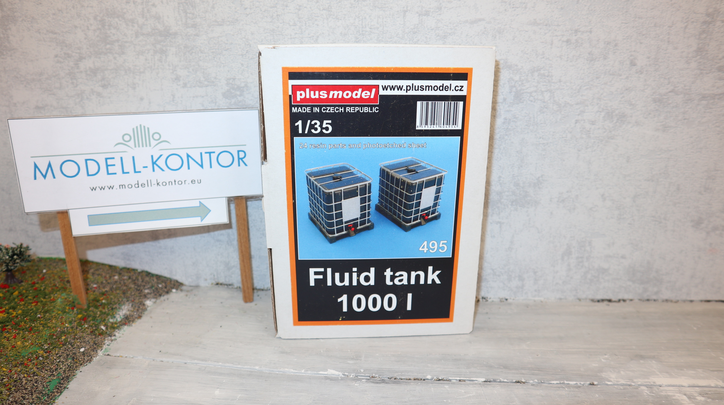 Plusmodell 495 in 1:35, IBC-Container 1000 Liter, Bausatz mit Metallgitter, NEU in OVP