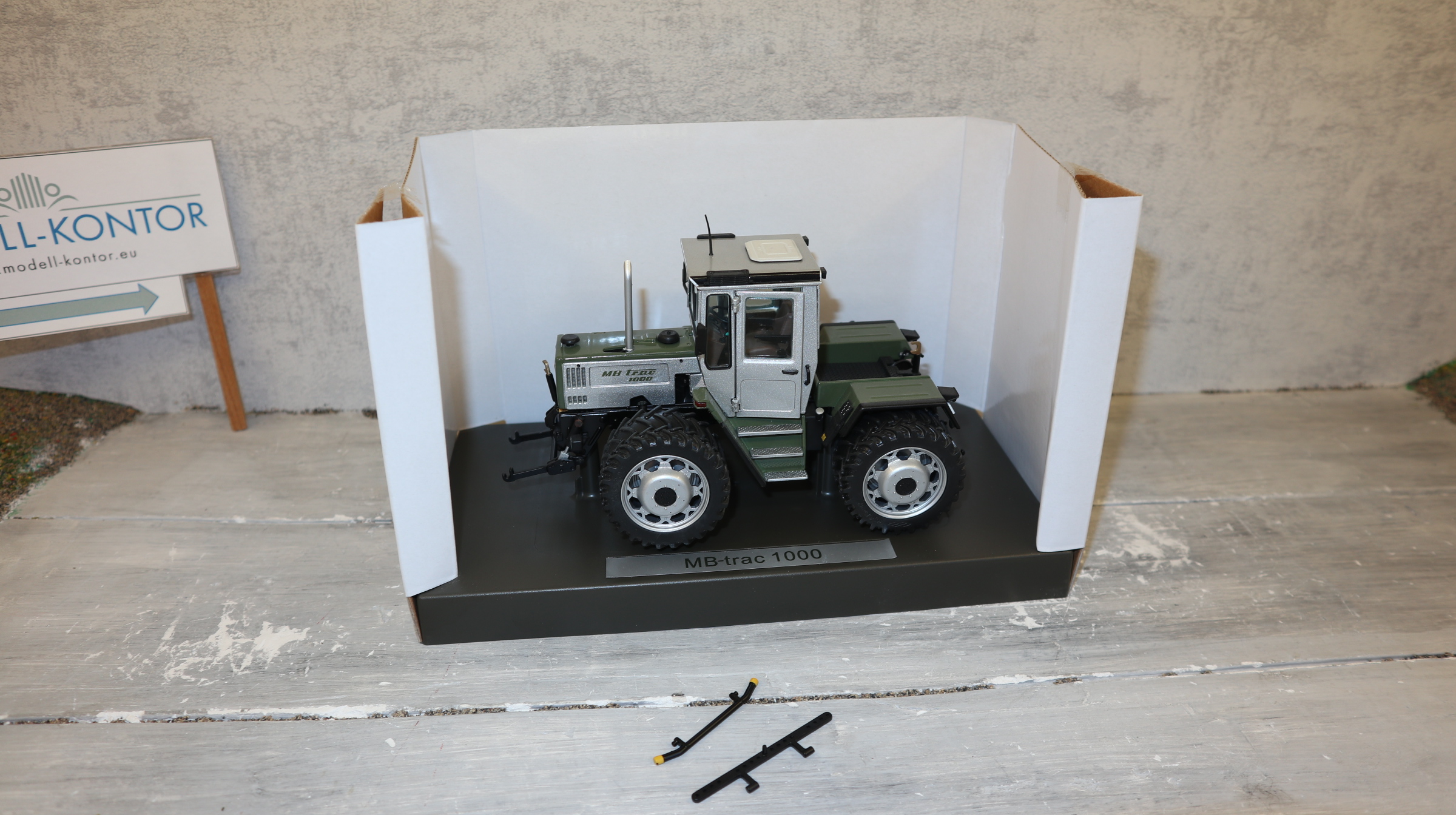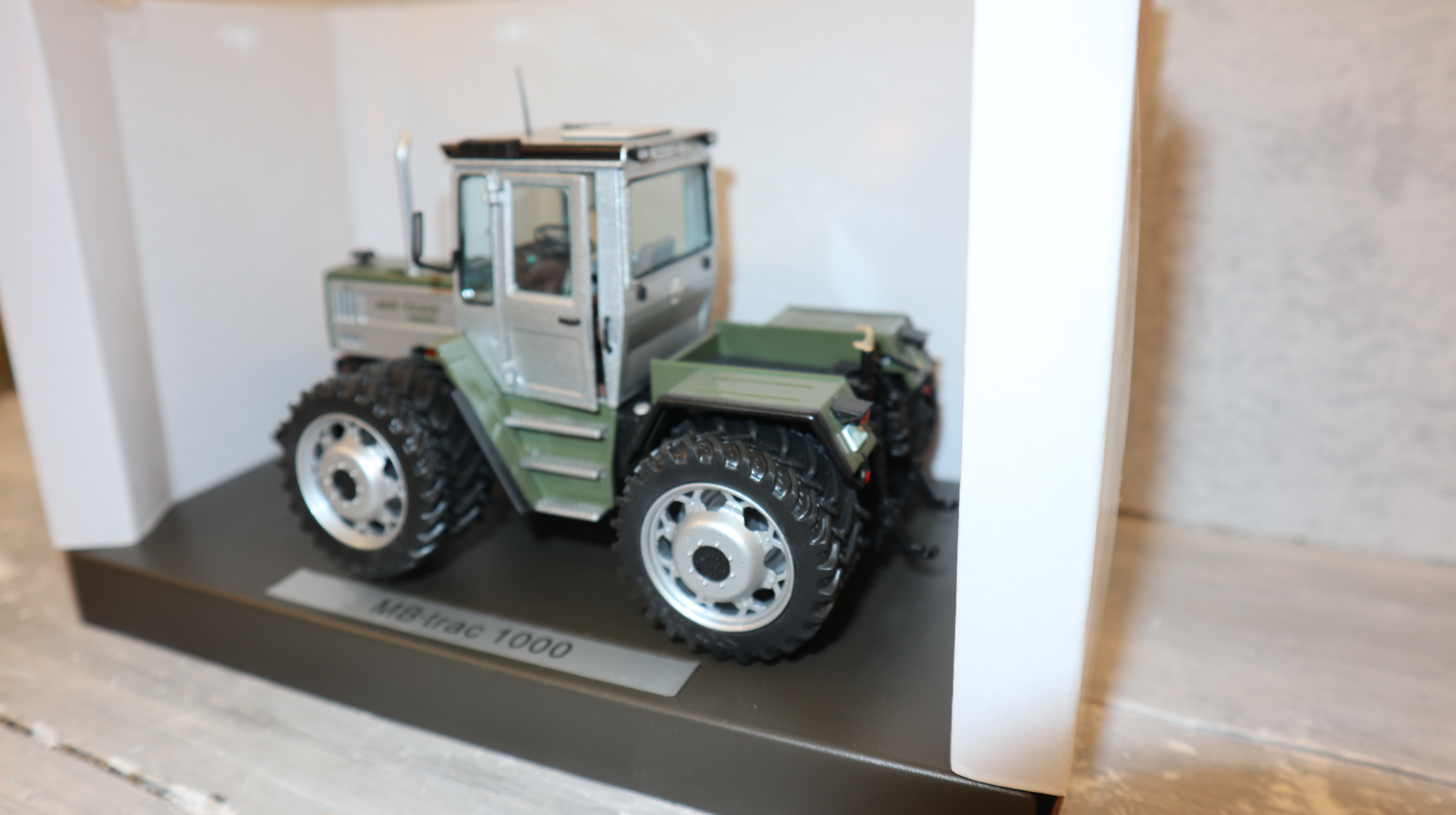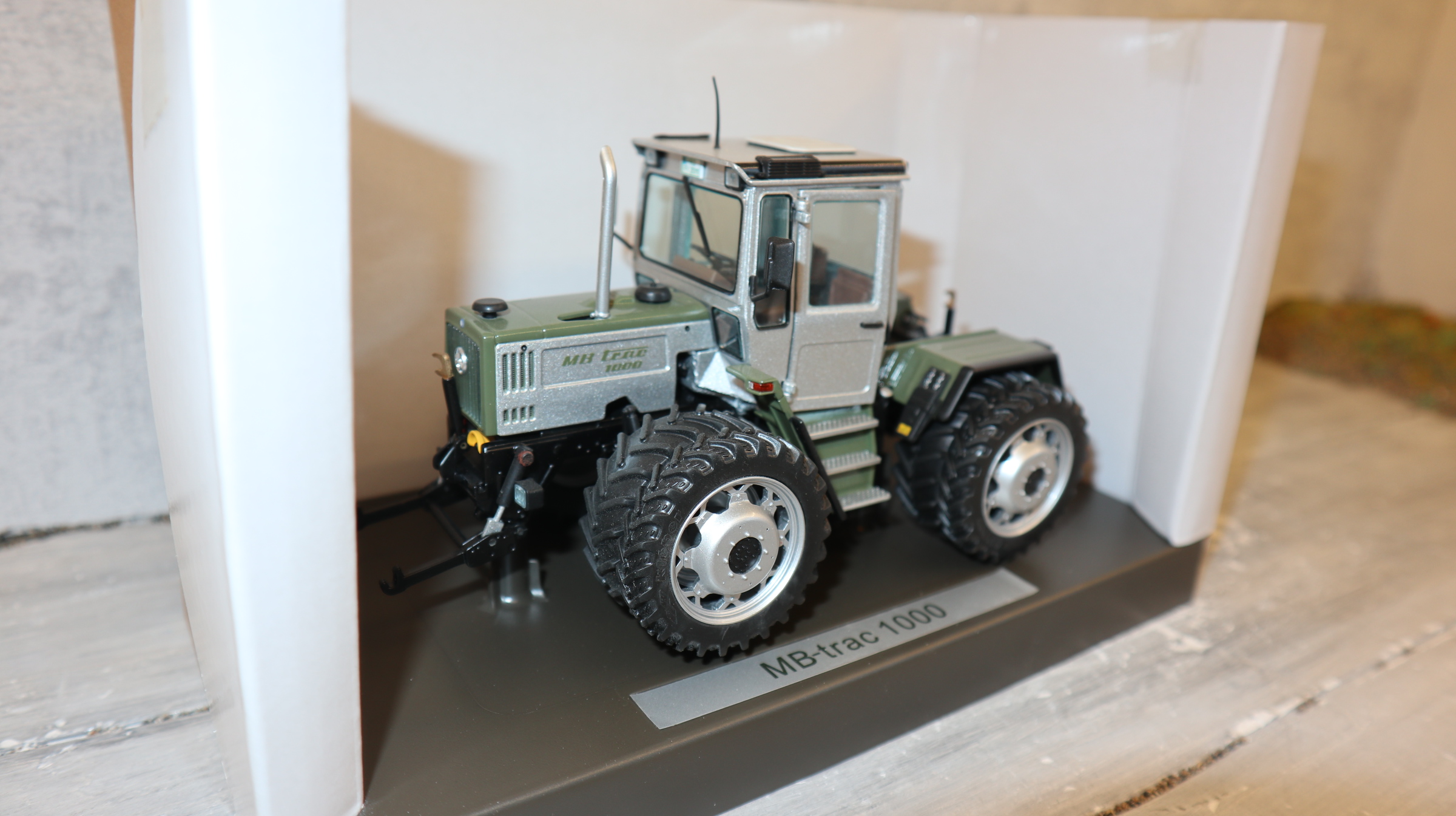 Produktinformationen "Weise Toys - Profi in 1:32, MB-trac 1000 silber-distelgrün, Zwillingsreifen, NEU in OVP"